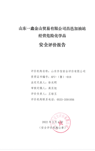 | 山東一鑫金山貿(mào)易有限公司昌邑加油站經(jīng)營危險化學(xué)品項目 |