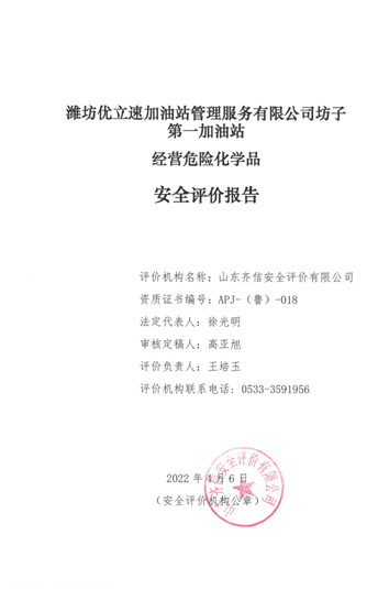 | 濰坊優(yōu)立速加油站管理服務有限公司坊子第一加油站經(jīng)營危險化學品項目 |