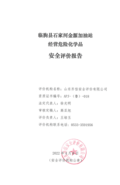 | 臨朐縣石家河金源加油站經營危險化學品項目 |
