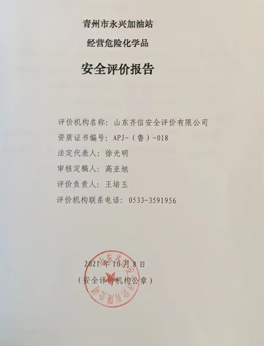 | 青州市永興加油站經(jīng)營危險化學(xué)品安全評價報告項目 |