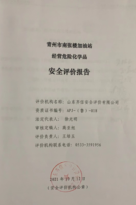 | 青州市南張樓加油站經(jīng)營危險化學品安全評價報告項目 |