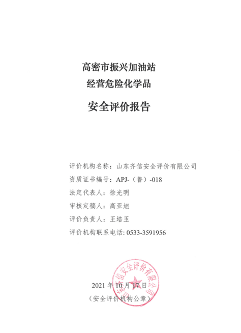 | 高密市振興加油站經(jīng)營危險化學品安全評價報告項目 |
