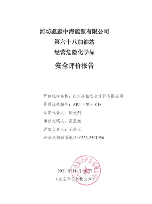 | 濰坊鑫淼中海能源有限公司第六十八加油站經(jīng)營危險化學品項目 |