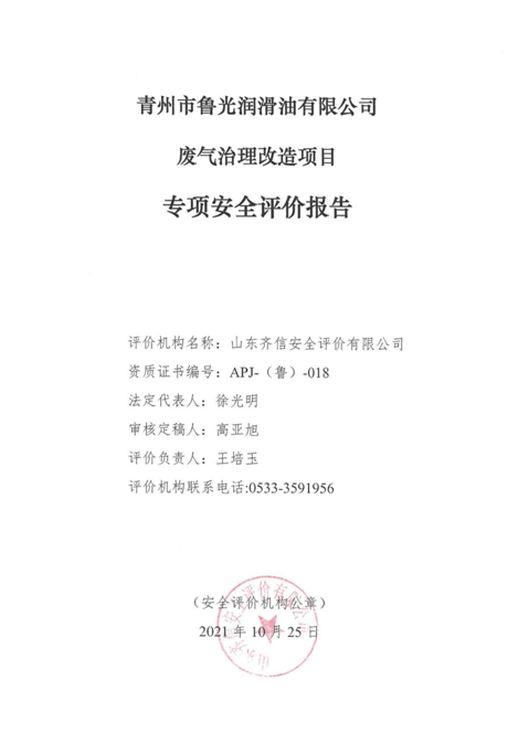 | 青州市魯光潤滑油有限公司廢氣治理改造項(xiàng)目 |
