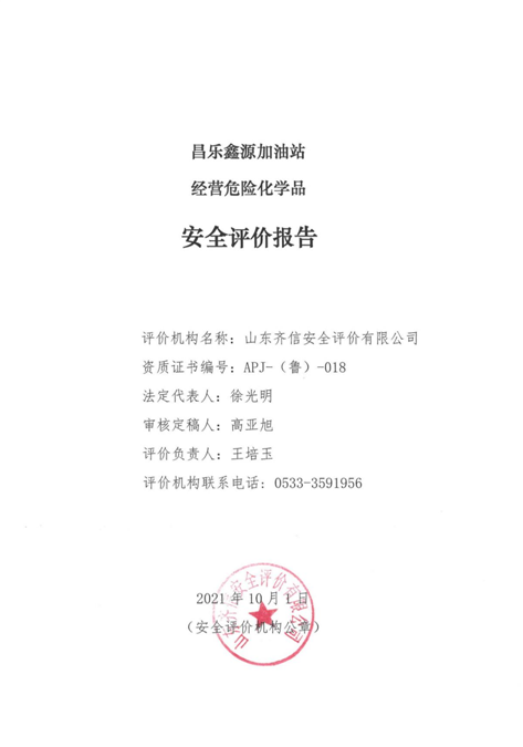 | 昌樂(lè)鑫源加油站經(jīng)營(yíng)危險(xiǎn)化學(xué)品安全評(píng)價(jià)報(bào)告項(xiàng)目 |