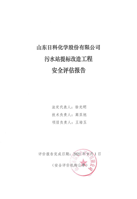 | 山東日科化學股份有限公司污水站提標改造工程安全評估報告項目 |