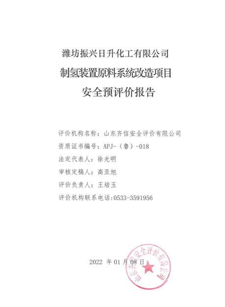 | 濰坊振興日升化工有限公司制氫裝置原料系統(tǒng)改造項(xiàng)目安全預(yù)評價報告 |