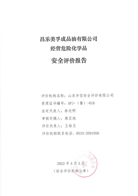 | 昌樂美孚成品油有限公司經(jīng)營危險化學(xué)品安全評價報告項目 |