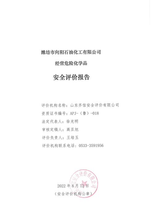 | 濰坊市向陽(yáng)石油化工有限公司經(jīng)營(yíng)危險(xiǎn)化學(xué)品項(xiàng)目 |