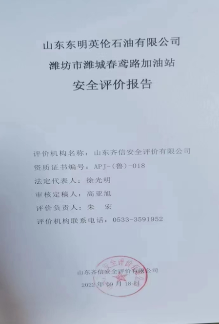 | 山東東明英倫石油有限公司濰坊市濰城春鳶路加油站 安全評(píng)價(jià) |