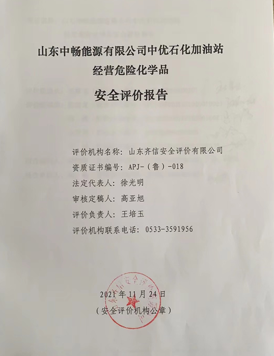 | 山東中暢能源有限公司中優(yōu)石化加油站經(jīng)營(yíng)危險(xiǎn)化學(xué)品安全評(píng)價(jià)報(bào)告項(xiàng)目 |