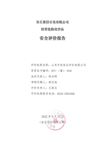 | 安丘景信石化有限公司經(jīng)營危險化學品安全評價報告項目 |