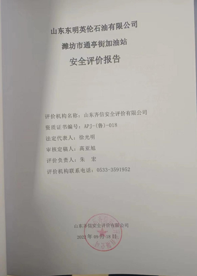 | 山東東明英倫石油有限公司濰坊市通亭街加油站 安全評價 |