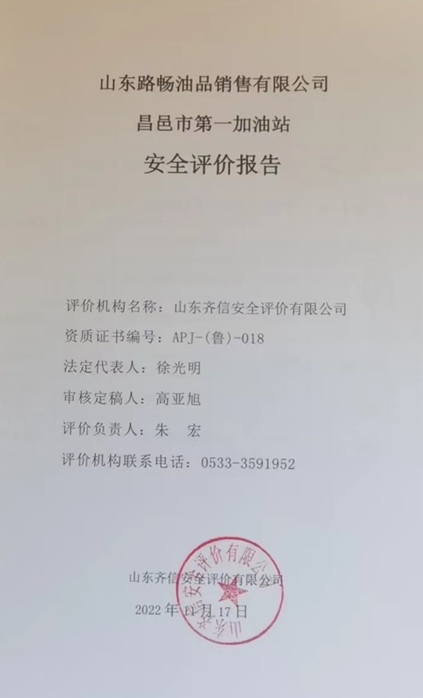 | 山東路暢油品銷售有限公司昌邑市第一加油站安全評價(jià) |