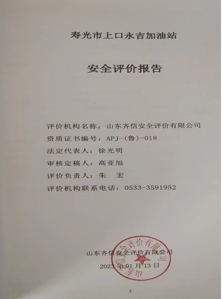 | 壽光市上口永吉加油站安全評價(jià) |