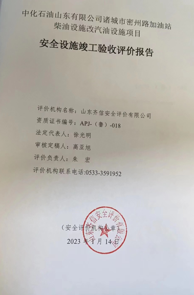 | 中化石油山東有限公司諸城市密州路加油站安全評價 |