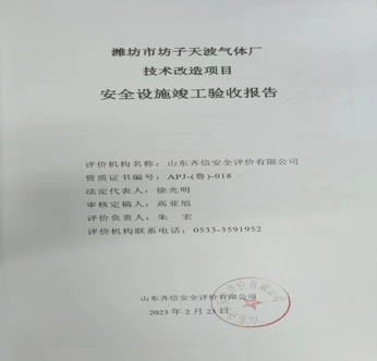 | 濰坊市坊子天波氣體廠技術(shù)改造項(xiàng)目 安全設(shè)施竣工驗(yàn)收評(píng)價(jià) |