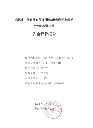 | 昌邑市中海石油有限公司濰坊濰城第五加油站經(jīng)營(yíng)危險(xiǎn)化學(xué)品項(xiàng)目 |