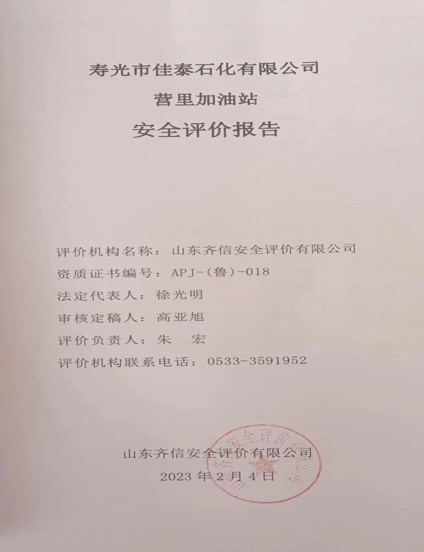 | 壽光市佳泰石化有限公司營里加油站安全評價 |