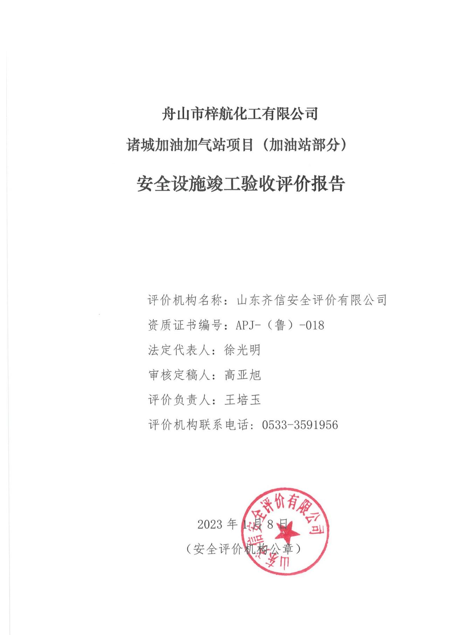 | 舟山市梓航化工有限公司諸城加油加氣站項目(加油站部分) |