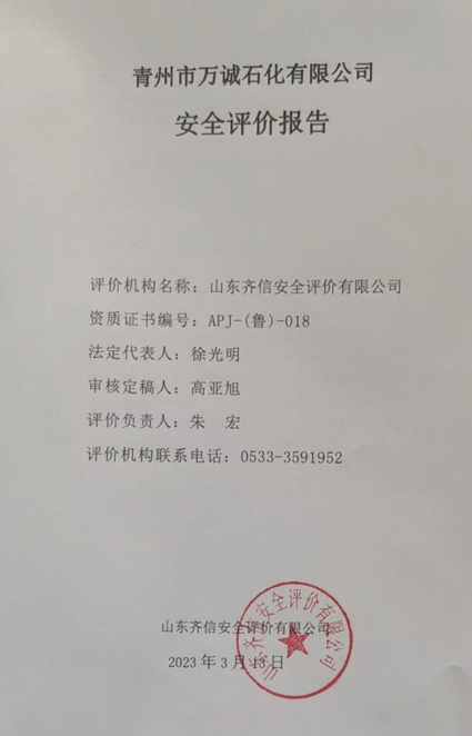 | 青州市萬誠石化有限公司 安全評價(jià) |