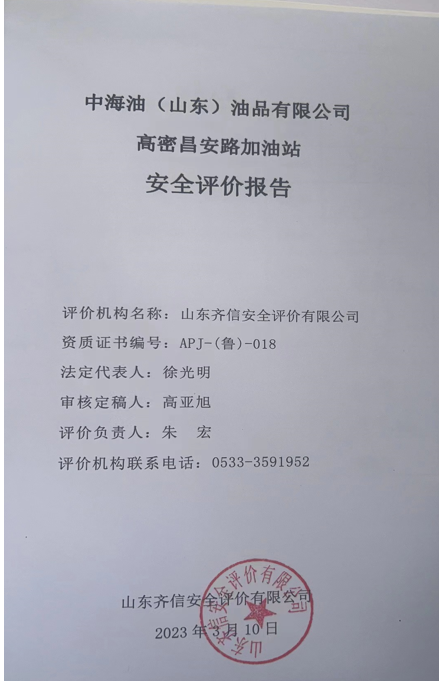 | 中海油(山東)油品有限公司高密昌安路加油站 安全評(píng)價(jià) |