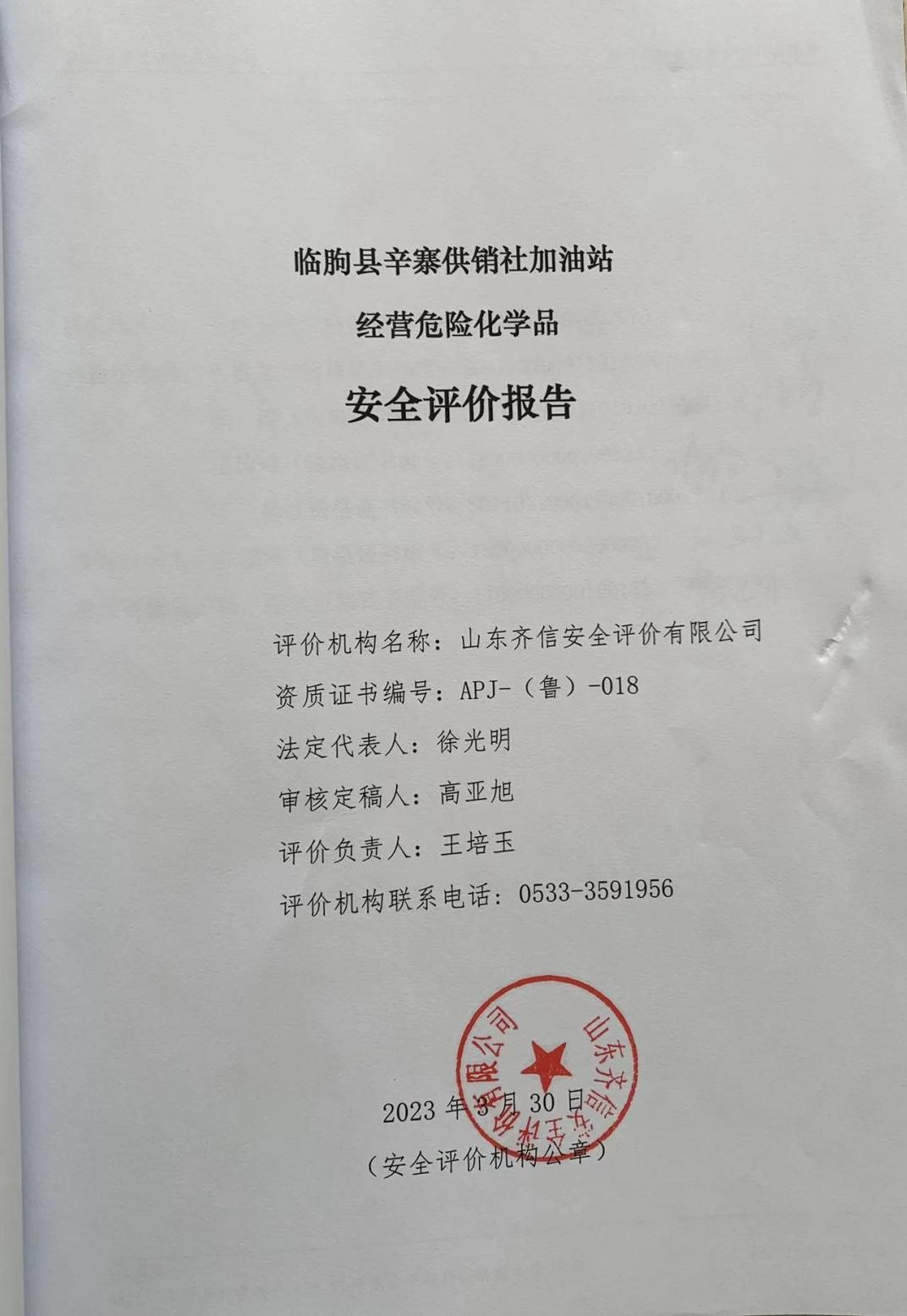 | 臨朐縣辛寨供銷社加油站經(jīng)營危險化學(xué)品安全評價報告 |
