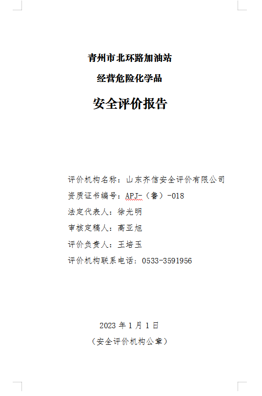 | 青州市北環(huán)路加油站經(jīng)營危險化學(xué)品項目安全現(xiàn)狀評價報告 |