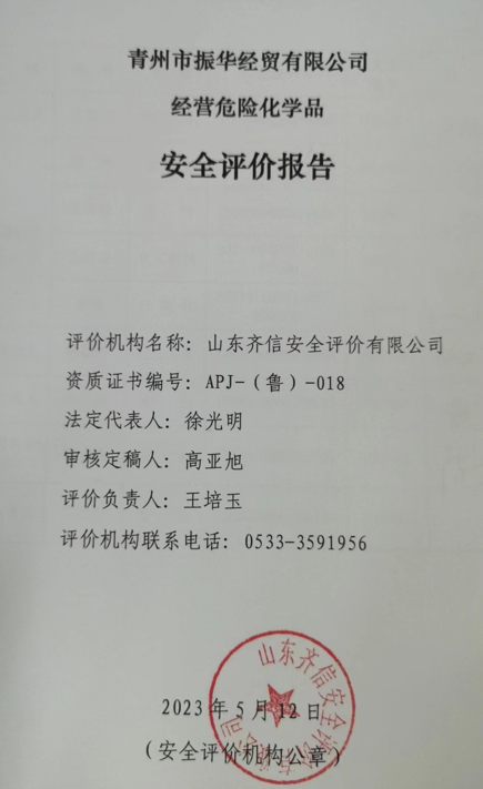 | 青州市振華經(jīng)貿(mào)有限公司經(jīng)營危險化學品項目安全現(xiàn)狀評價報告 |