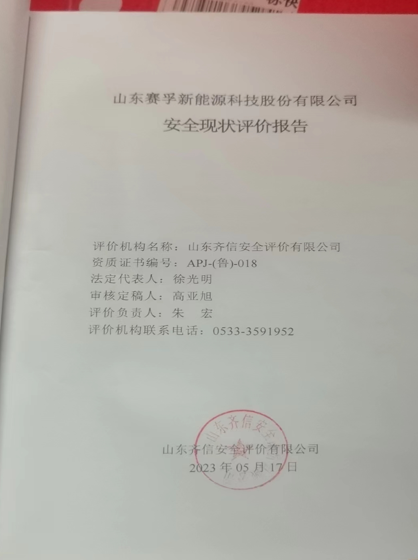 | 山東賽孚新能源科技股份有限公司 安全現(xiàn)狀評(píng)價(jià)報(bào)告 |
