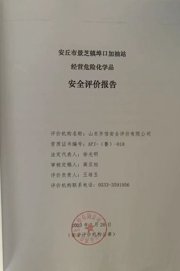 | 安丘市景芝鎮(zhèn)埠口加油站經(jīng)營危險(xiǎn)化學(xué)品項(xiàng)目安全現(xiàn)狀評價(jià)報(bào)告 |