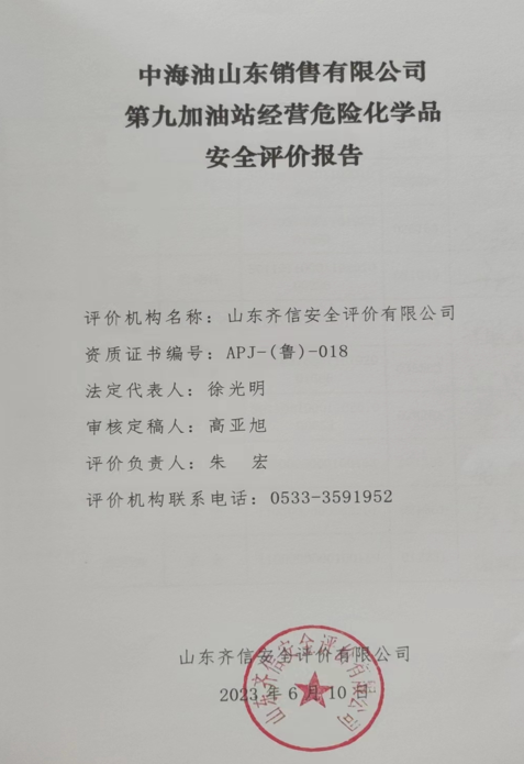 | 中海油山東銷售有限公司第九加油站安全評價報告 |