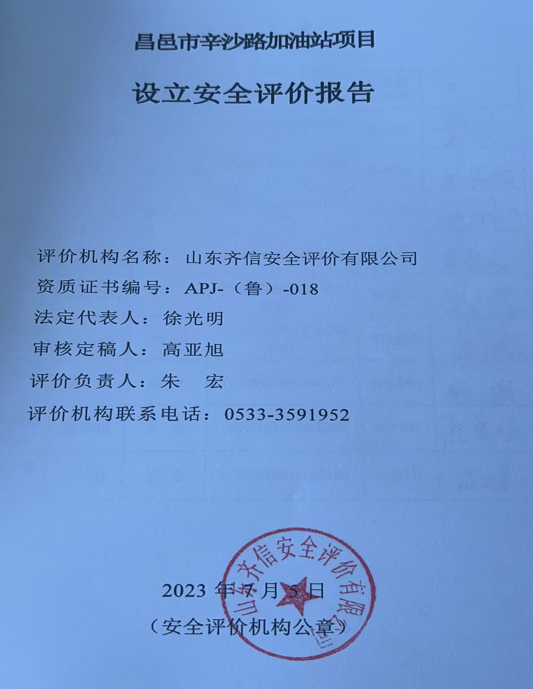 | 昌邑市辛沙路加油站設(shè)立安全評(píng)價(jià)報(bào)告 |