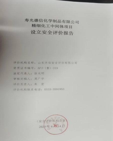 | 壽光德信化學(xué)制品有限公司精細(xì)化工中間體項(xiàng)目 設(shè)立安全評(píng)價(jià)報(bào)告 |
