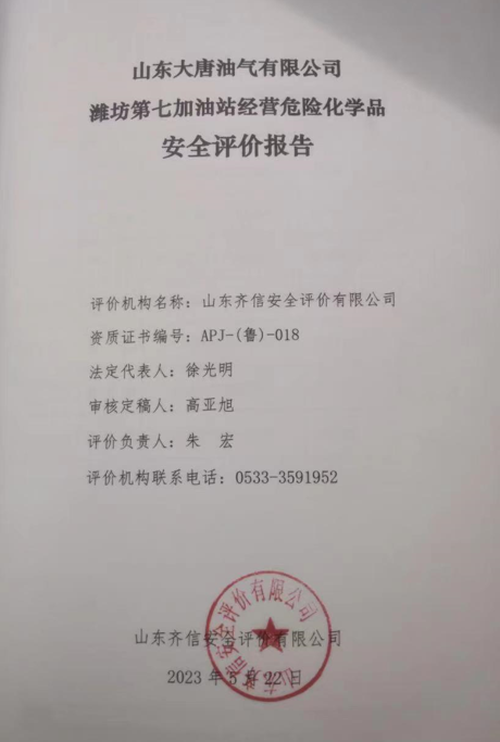 | 山東大唐油氣有限公司濰坊第七加油站 安全評(píng)價(jià)報(bào)告 |