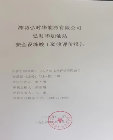 | 濰坊弘時(shí)華能源有限公司弘時(shí)華加油站 安全設(shè)施竣工驗(yàn)收評(píng)價(jià) |
