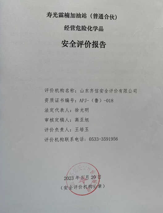 | 壽光霖楠加油站(普通合伙)經(jīng)營(yíng)危險(xiǎn)化學(xué)品項(xiàng)目安全現(xiàn)狀評(píng)價(jià)報(bào)告 |