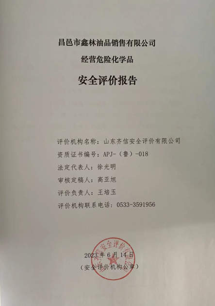 | 昌邑市鑫林油品銷售有限公司 經(jīng)營危險化學(xué)品項目安全現(xiàn)狀評價報告 |
