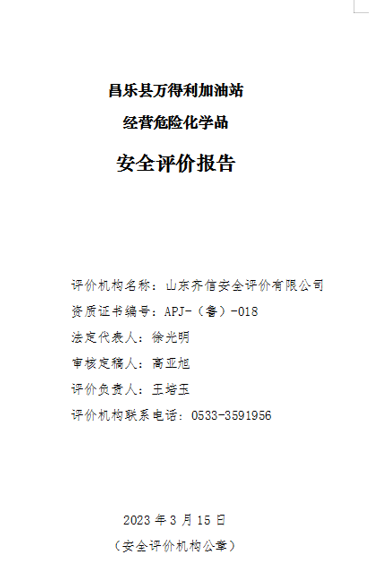 | 昌樂(lè)縣萬(wàn)得利加油站經(jīng)營(yíng)危險(xiǎn)化學(xué)品項(xiàng)目安全現(xiàn)狀評(píng)價(jià)報(bào)告 |