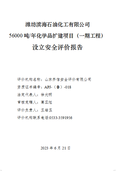 | 濰坊濱海石油化工有限公司56000噸/年化學(xué)品擴(kuò)建項目(一期工程)安全預(yù)評價 |