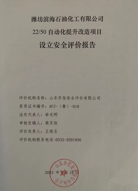| 濰坊濱海石油化工有限公司22/50自動化提升改造項目設立評價 |