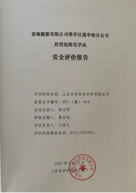 | 富海能源有限公司寒亭區(qū)通亭街分公司經(jīng)營(yíng)危險(xiǎn)化學(xué)品項(xiàng)目安全現(xiàn)狀評(píng)價(jià)報(bào)告 |