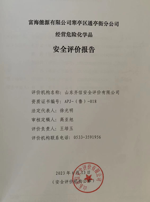 | 富海能源有限公司寒亭區(qū)通亭街分公司經(jīng)營危險(xiǎn)化學(xué)品項(xiàng)目安全現(xiàn)狀評(píng)價(jià)報(bào)告 |