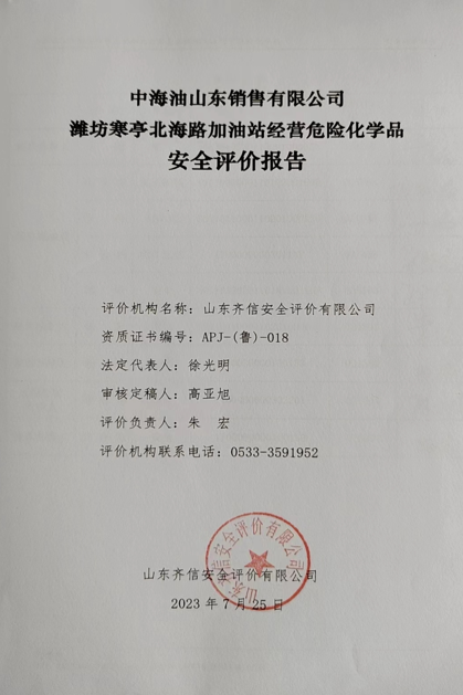 | 中海油山東銷(xiāo)售有限公司濰坊寒亭北海路加油站安全評(píng)價(jià)報(bào)告 |
