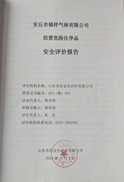 | 安丘市福祥氣體有限公司安全評價報告 |