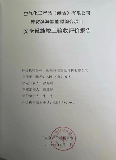 | 空氣化工產(chǎn)品(濰坊)有限公司濰坊濱海氫能源綜合項(xiàng)目 安全設(shè)施竣工驗(yàn)收評(píng)價(jià)報(bào)告 |