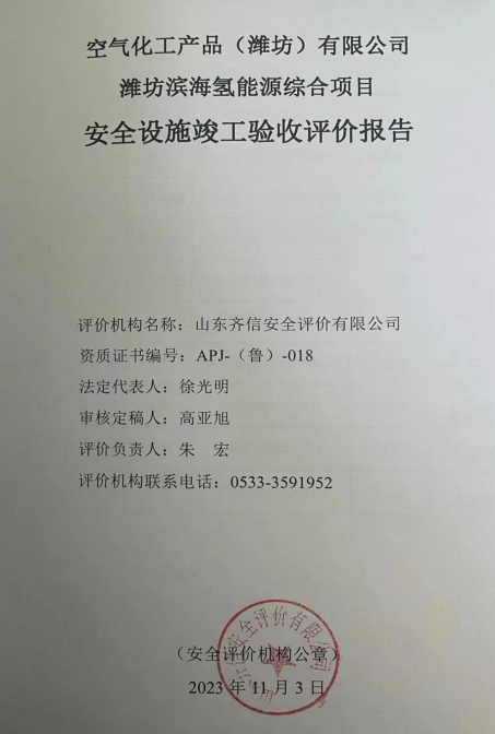 | 空氣化工產品(濰坊)有限公司濰坊濱海氫能源綜合項目 安全設施竣工驗收評價報告 |