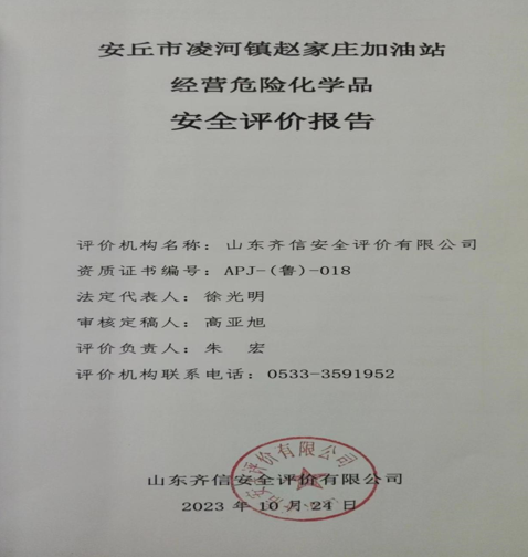 | 安丘市凌河鎮(zhèn)趙家莊加油站安全評價報告 |