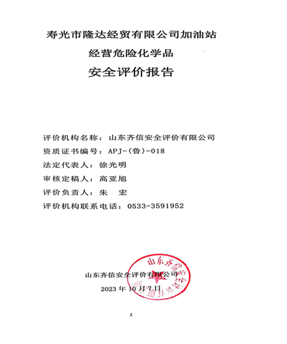 | 壽光市隆達(dá)經(jīng)貿(mào)有限公司加油站安全評(píng)價(jià)報(bào)告 |