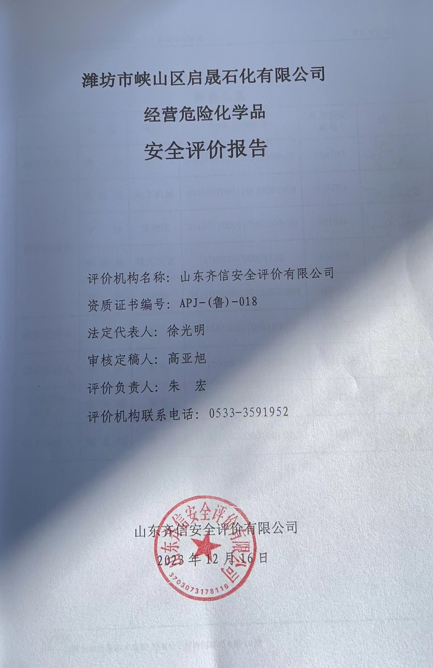 | 濰坊市峽山區(qū)啟晟石化有限公司安全評價報(bào)告 |